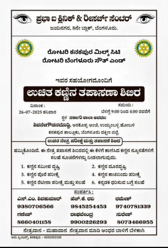 Eye Camp at Kanakapura Rotary Bangalore South End, in association . . .